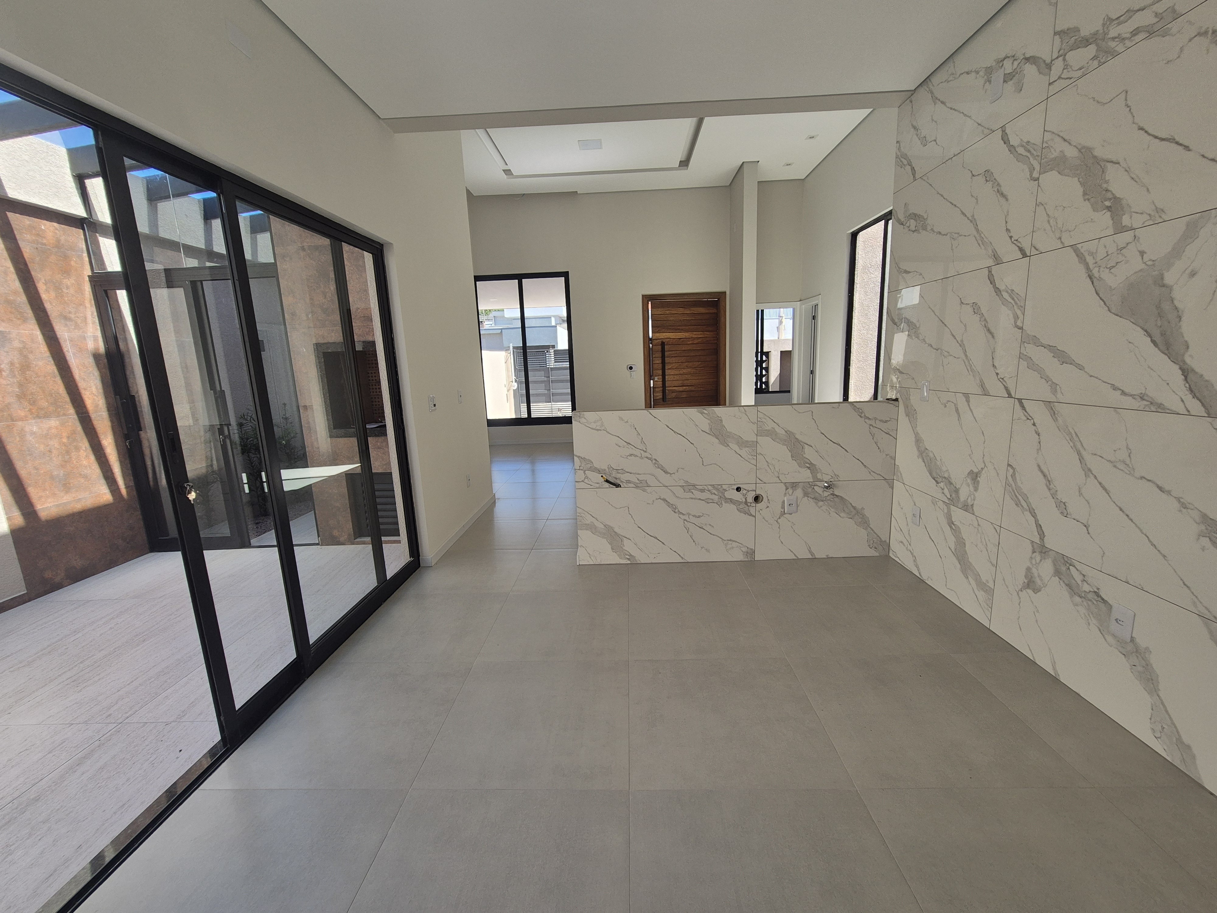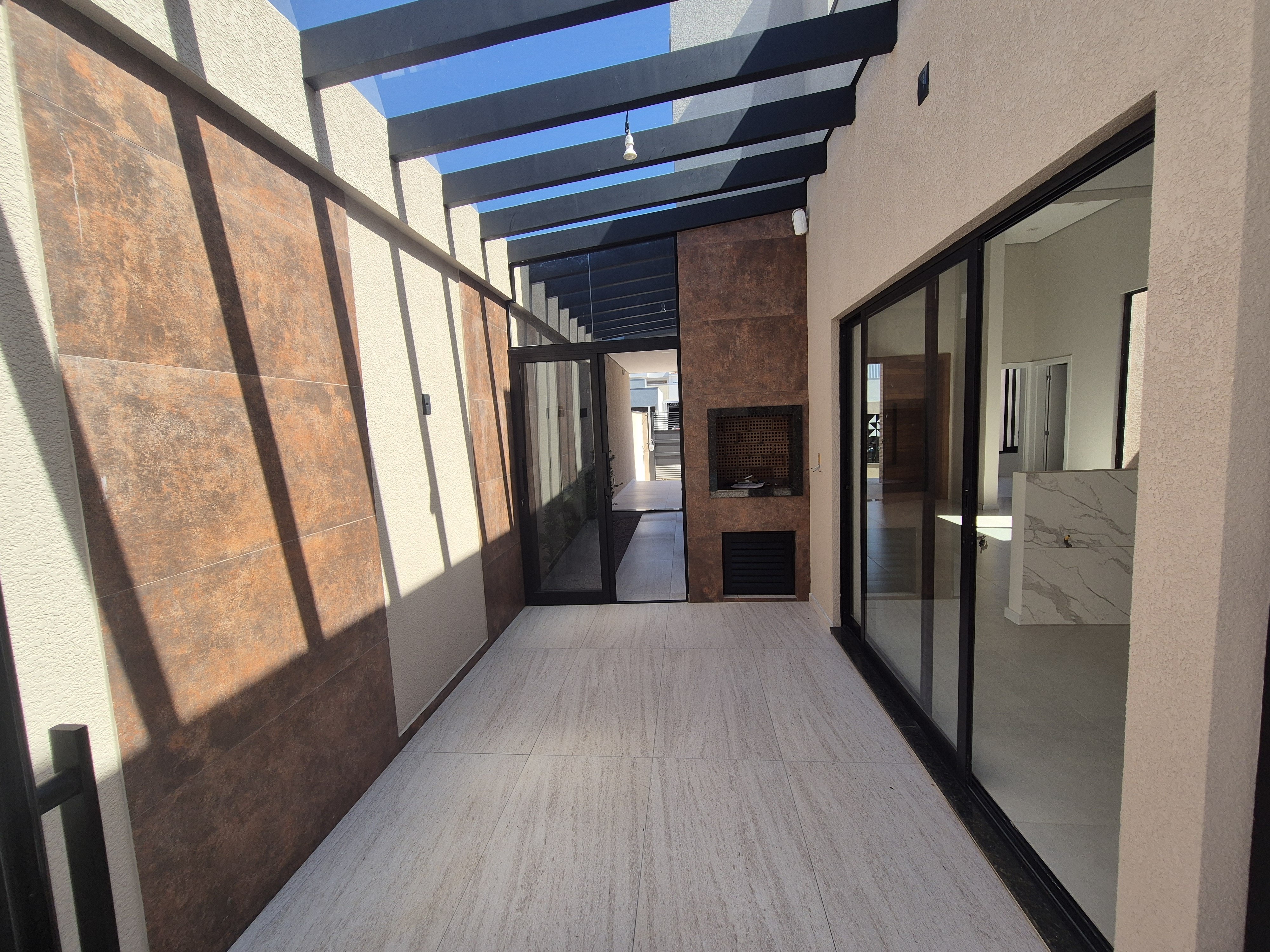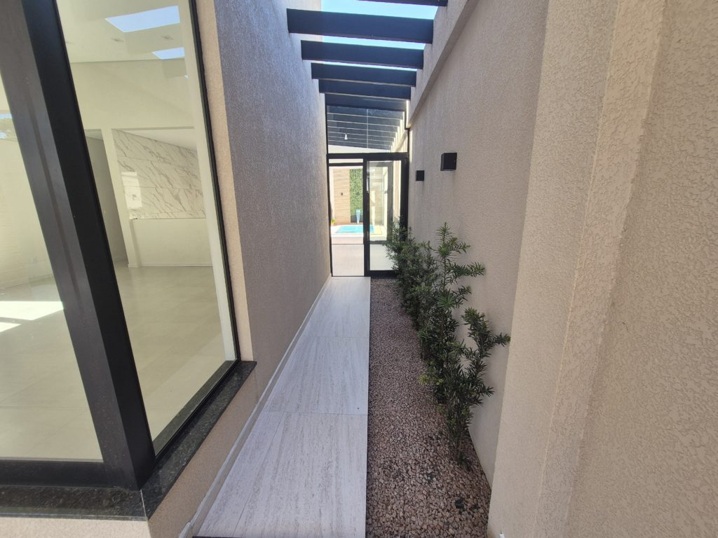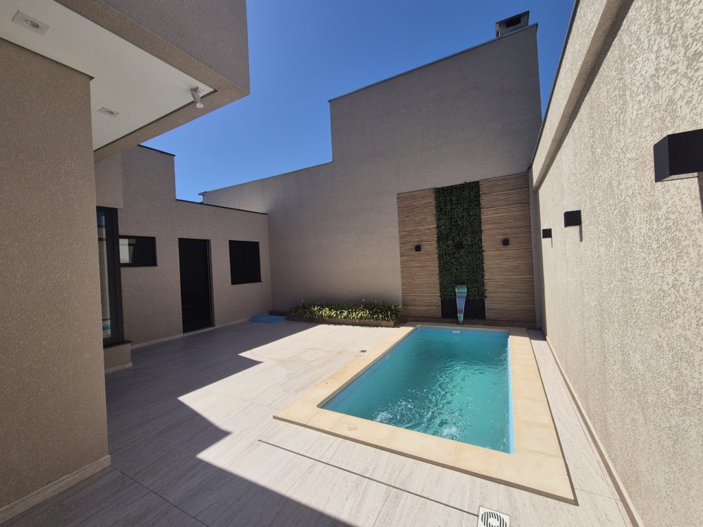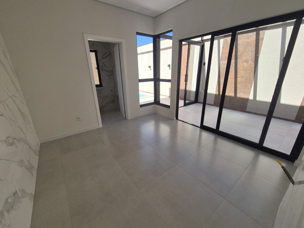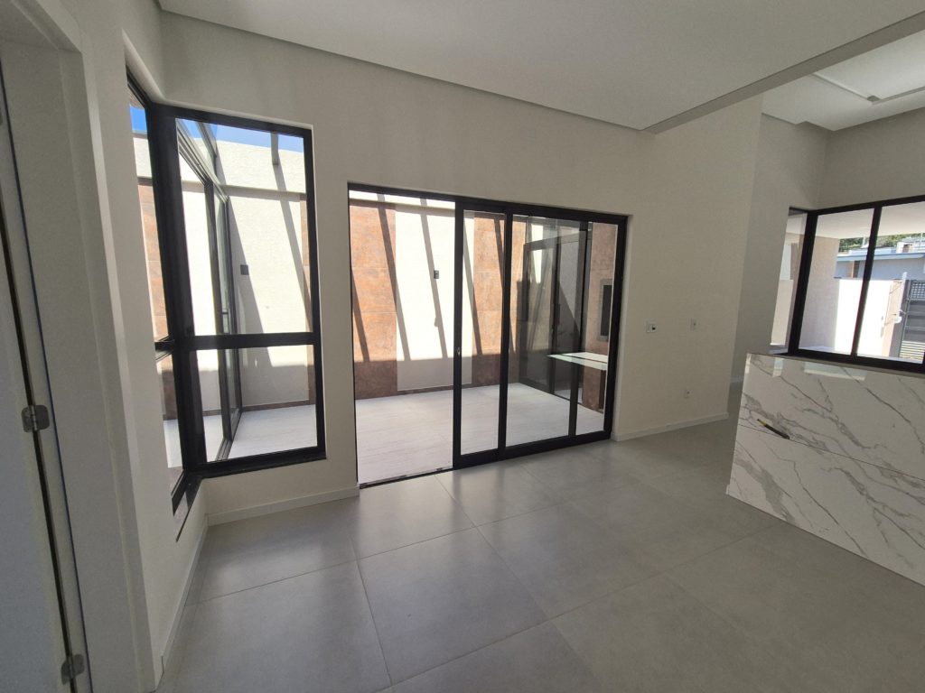 Casa nova com arquitetura moderna e área de lazer encantadora Apresentamos esta linda casa nova, com um projeto moderno e cheio de charme. Com amplas janelas que proporcionam excelente iluminação natural, o ambiente é acolhedor e elegante em todos os detalhes. A casa conta com sala e cozinha em conceito aberto, três dormitórios (sendo uma suíte), banheiro social, área de serviço e um depósito. Nos fundos, o destaque fica para a área gourmet — um espaço encantador com pergolado coberto em vidro, perfeito para receber amigos e familiares. E para completar, uma bela piscina com cascata, trazendo ainda mais conforto e lazer para o seu dia a dia. A garagem acomoda dois carros lado a lado. Uma casa pensada para quem busca qualidade, beleza e praticidade em um só lugar.